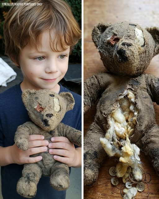 When my son found a filthy, one-eyed teddy bear half-buried in the grass, I didn’t want to take it home, but my son wouldn’t let go. That night, when I brushed its belly as he slept, something inside clicked, and a trembling voice whispered his name, begging for help.