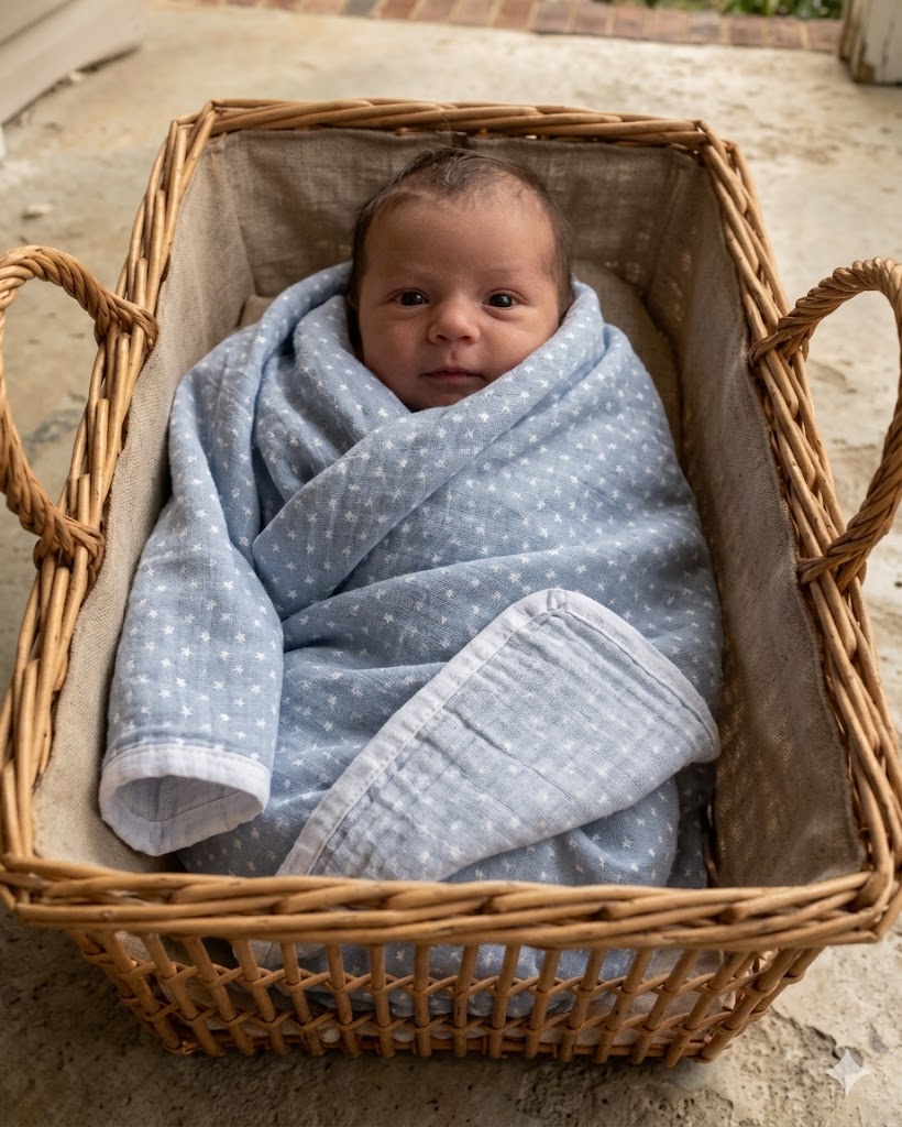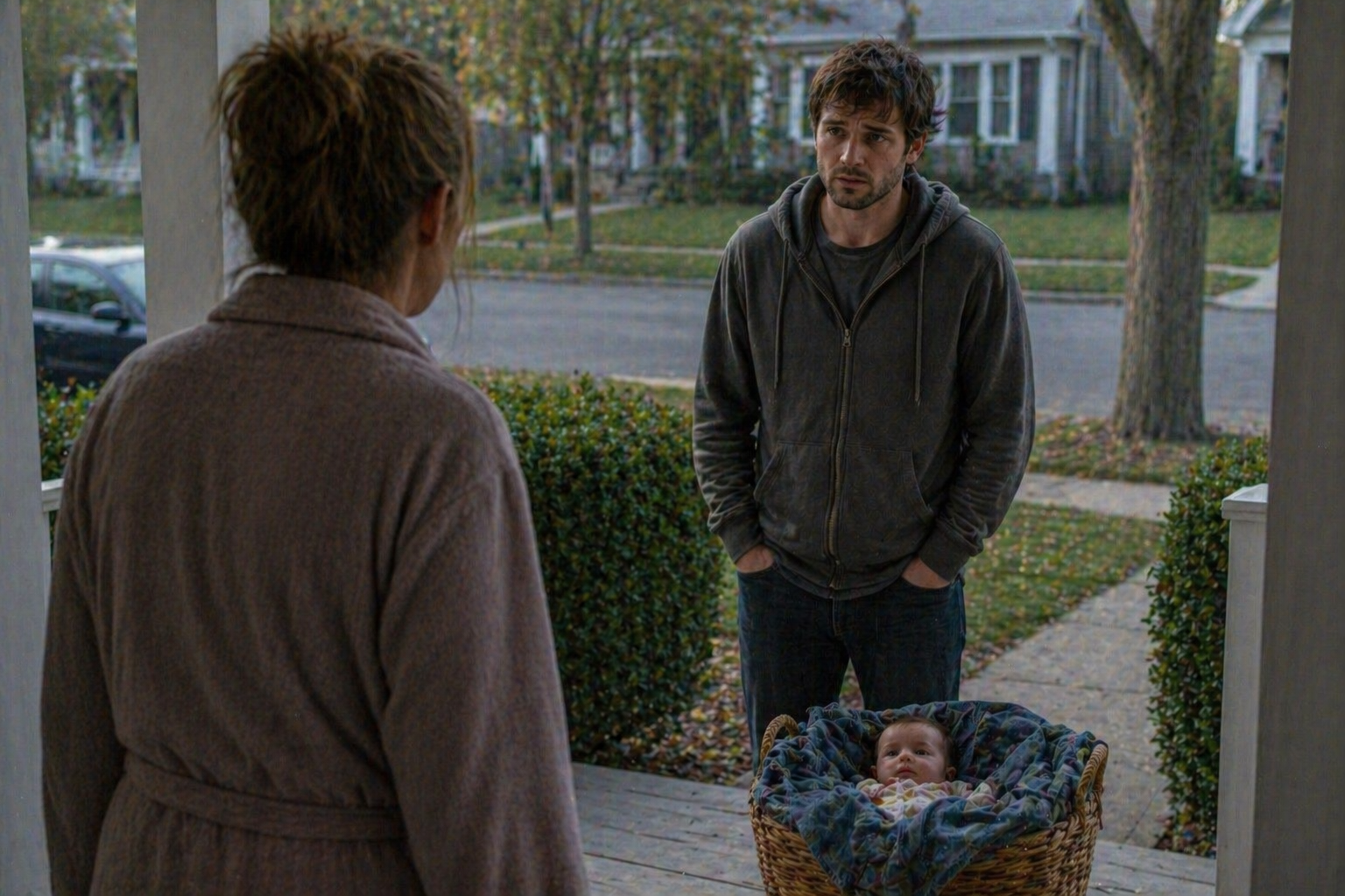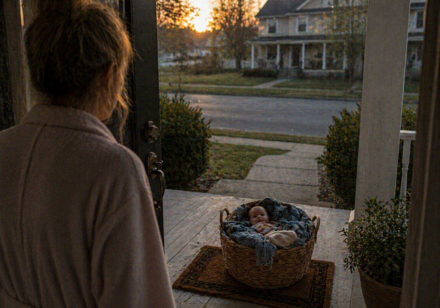 On the doorstep was a basket. Inside it was a baby. A tiny girl, no more than a few months old, wrapped carefully, looking up quietly as if she had been waiting. For a second, my mind couldn’t process what I was seeing. But then I noticed what she was wrapped in.
