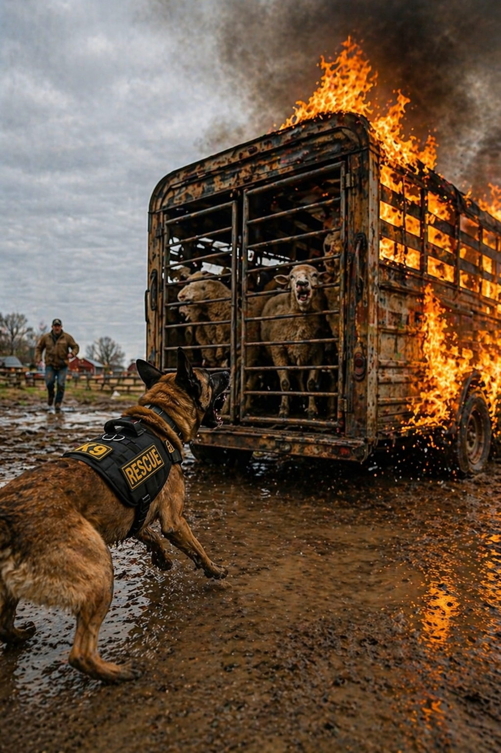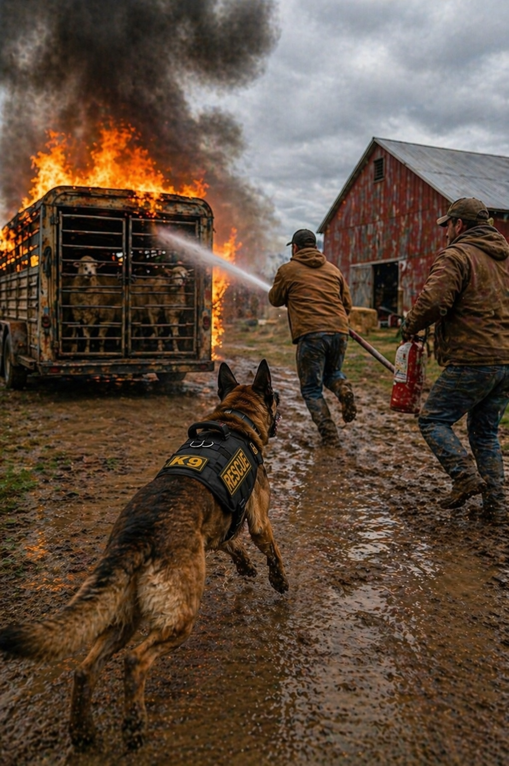 It stayed close, barking, moving around the trailer, trying to react to something it couldn’t control directly.