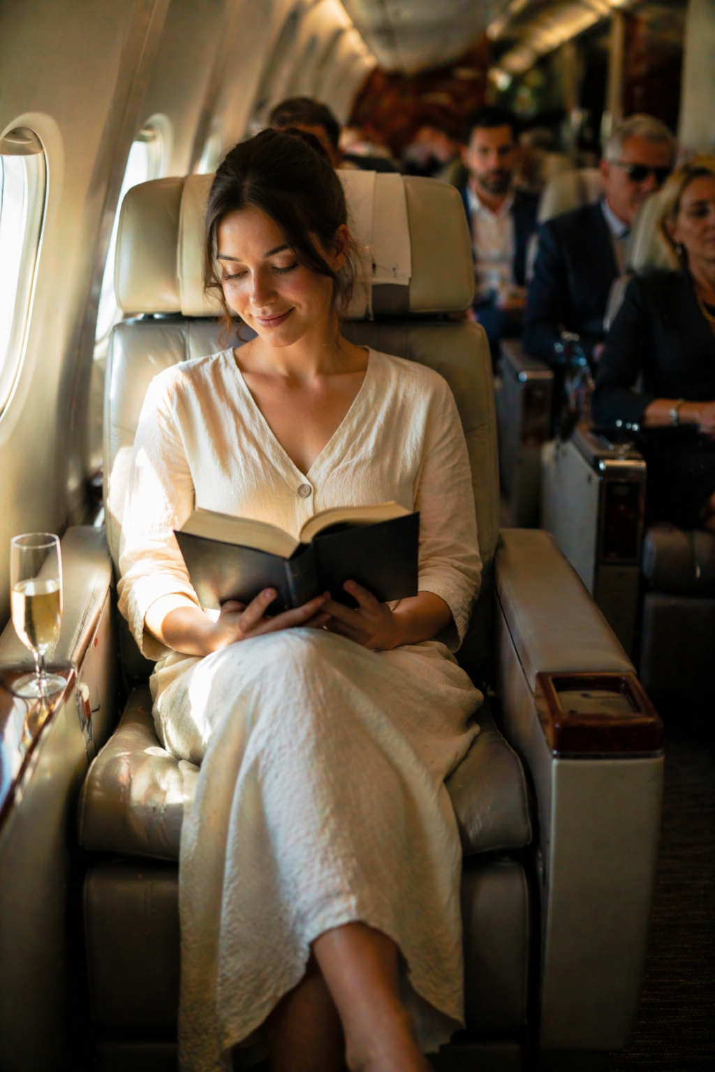 She wore a simple cream-colored linen dress. No jewelry. No visible signs of wealth. Just a book in her hands and a calm, focused expression.