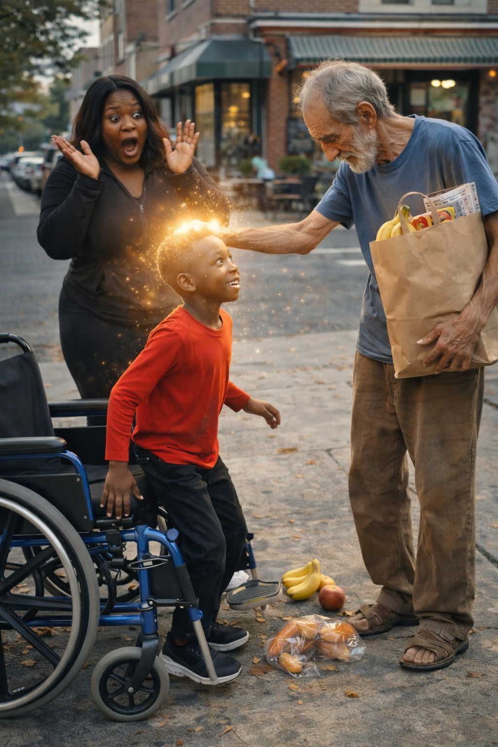 Then he raised his hand slowly and placed it gently on the boy’s head.