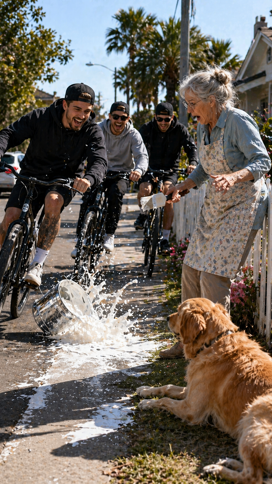 Three young men rode past, laughing loudly, not paying attention to anything around them. One of them clipped the paint bucket as he passed, and in a split second, everything changed.