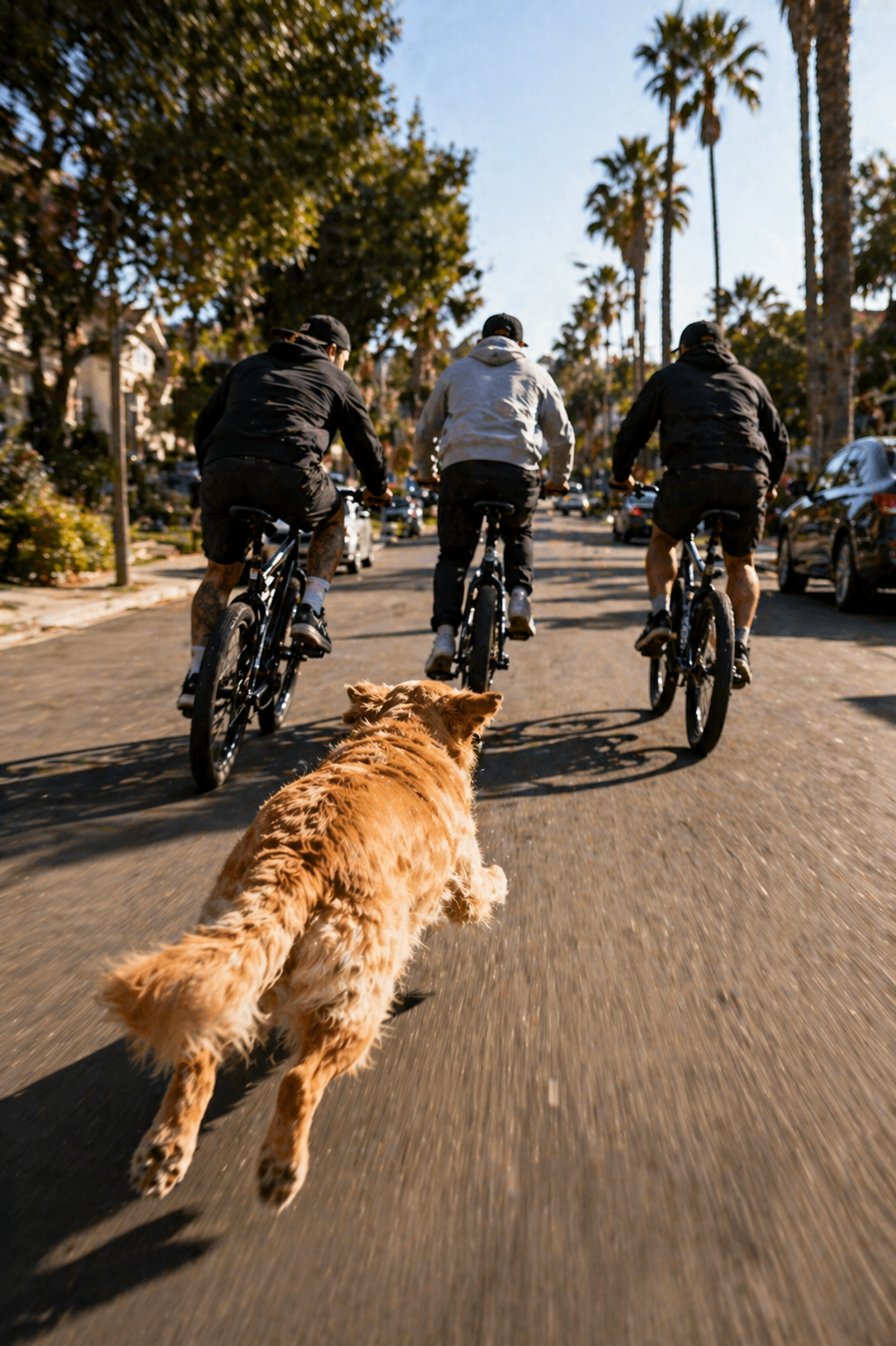 The dog didn’t hesitate. It ran forward, fast, focused, following the path the bikes had taken. The distance between them closed quickly, and the energy of the moment changed from passive to active.