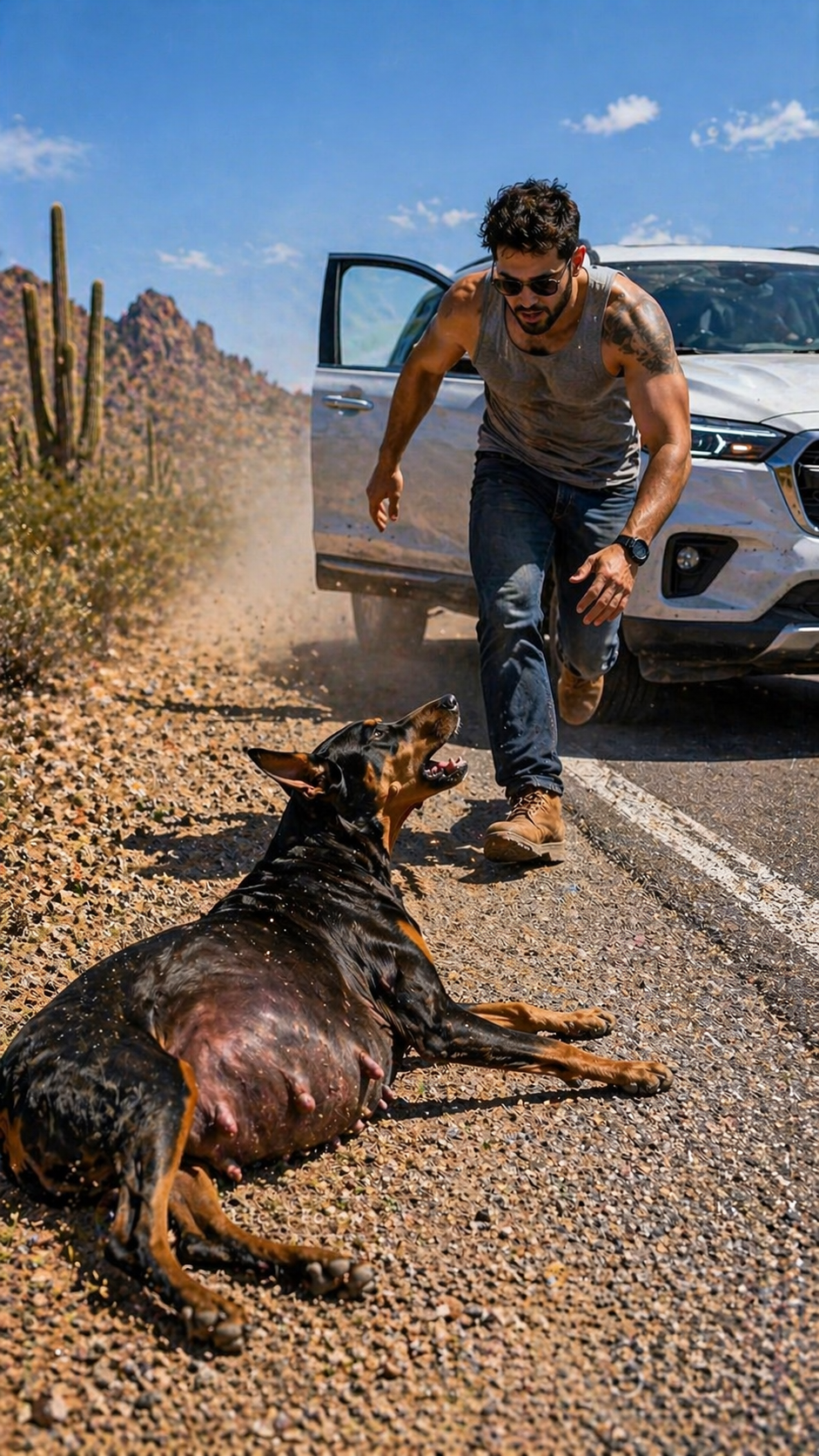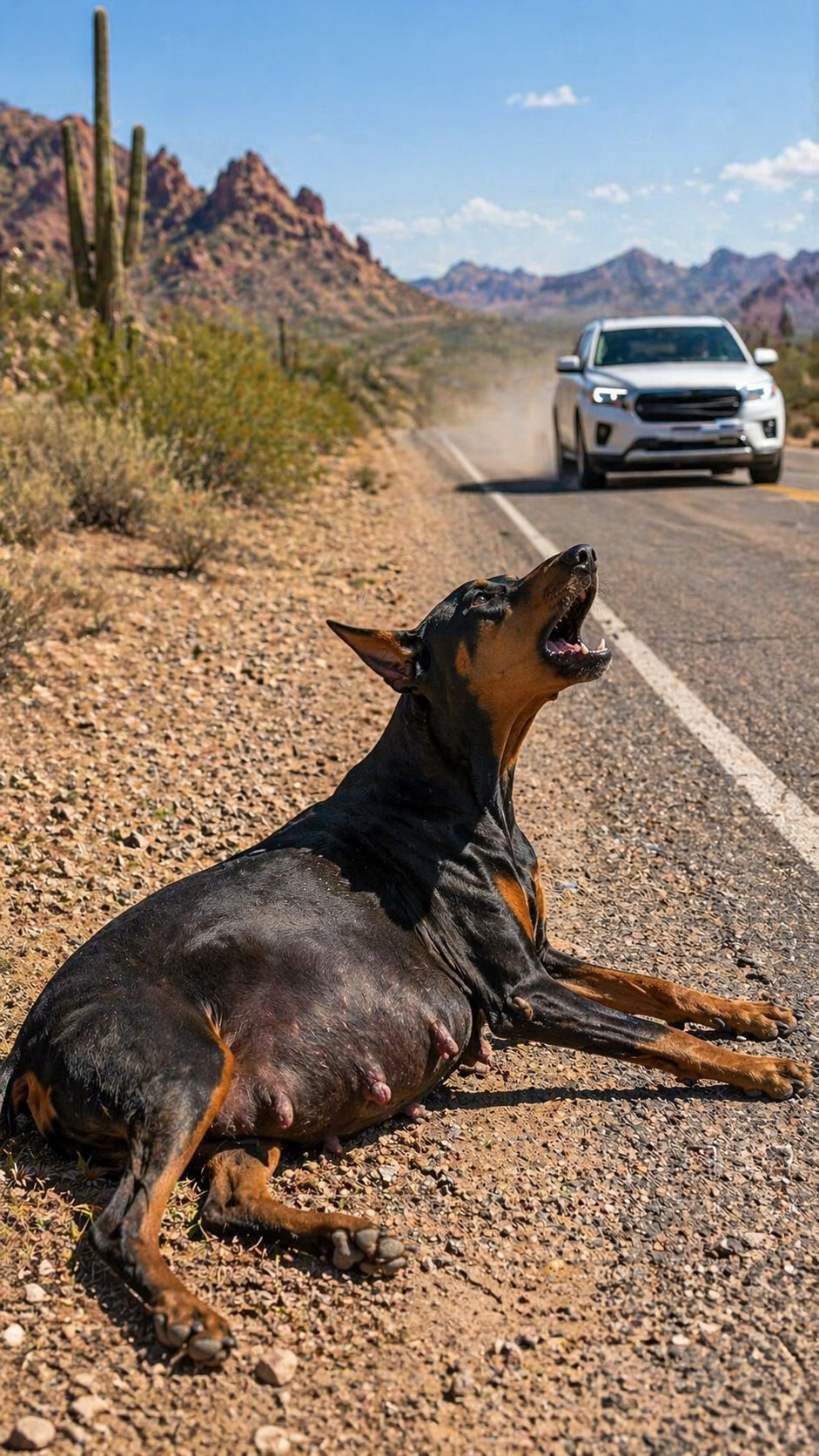 Up close, the situation was clear. This wasn’t a dog resting by the road. Something was wrong.
