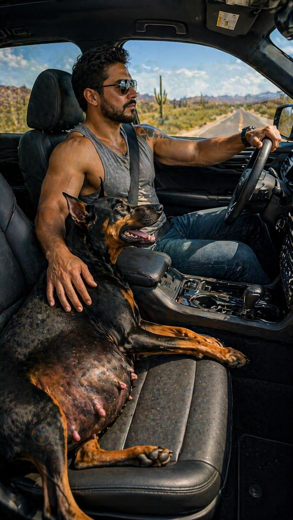 The dog stayed still, weak but no longer in danger. The man drove with focus, occasionally reaching out to keep her steady.
