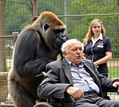 The gorilla slowly approached the man, who was now sitting in his wheelchair inside the enclosure. She looked at him with deep, soulful eyes; there was a connection, an old familiarity, a bond that even the keenest human observer would have struggled to understand. The zookeepers, armed with tranquilizers, hesitated, unsure of what to do next. They stood on the edge, ready for any sudden moves, tension crackling in the air like an electric current.
