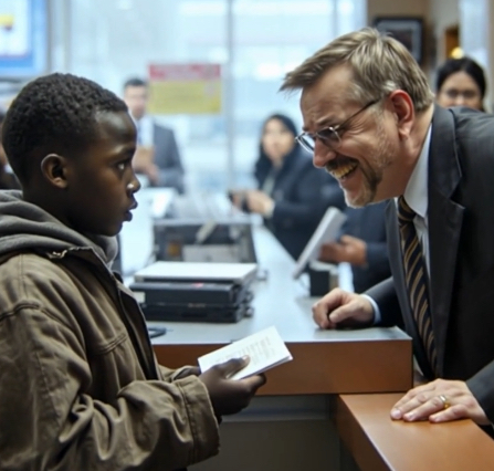 Wesley’s words faltered only slightly, buoyed by the strength of his grandmother’s lessons. “Sir, I have an account here,” he repeated, his voice steady despite the tremors that threatened to break it. The envelope he held was not just paper; it was his past, present, and future, wrapped in the love and foresight of a woman who knew the world could be cruel but also knew the power of preparation.