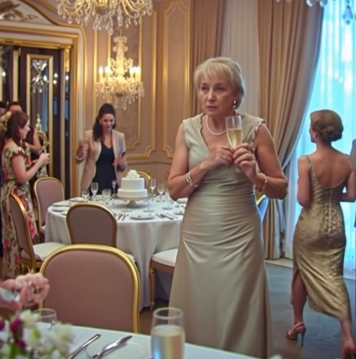 The speeches continued, oblivious to the silent battle. Caroline, usually so composed, shifted in her seat, a hand fluttering to her throat as though tracing the path of the champagne. She reached for the glass again, almost reflexively, before catching herself. Her eyes darted around the room, seeking an escape, but there was none.
