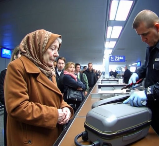 The security officer’s stern expression softened, replaced by a look of awe mixed with confusion. The surrounding passengers, who had stopped to watch the unfolding drama, let out a collective gasp as they leaned in to get a better look.