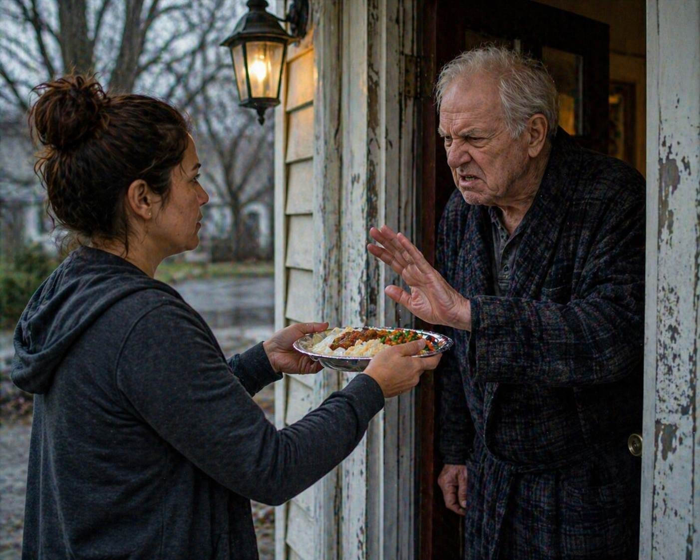 For seven years, I cooked an extra plate every night for a man who barely acted like I existed. Not because he asked, not because he earned it, and definitely not because he made it easy. His name was Arthur, and anyone on our street knew him—the bitter old man in the peeling white house three doors down, the one who shouted at kids and slammed the door if someone waved.