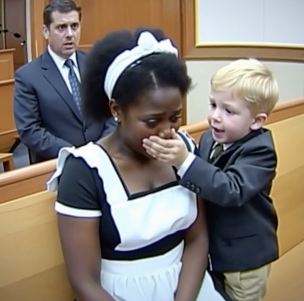 But in a twist of fate, a small voice pierced through the tense atmosphere of the courtroom. It was young Ethan, the billionaire’s son. He had managed to slip away from his nanny, driven by loyalty and affection for Claraara. With his small frame and innocent eyes, Ethan walked bravely toward the judge’s bench.
