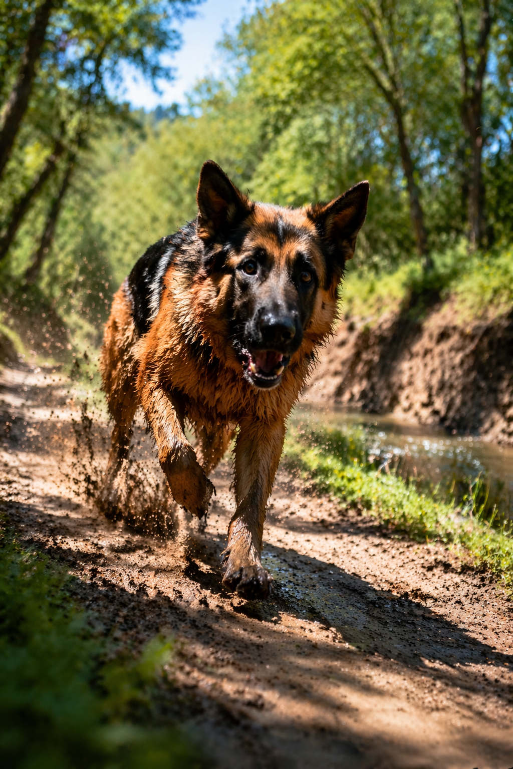 She sprinted along the river path, moving with full speed, her body cutting through the landscape with urgency. She didn’t hesitate. She didn’t slow down. She didn’t look back at first.