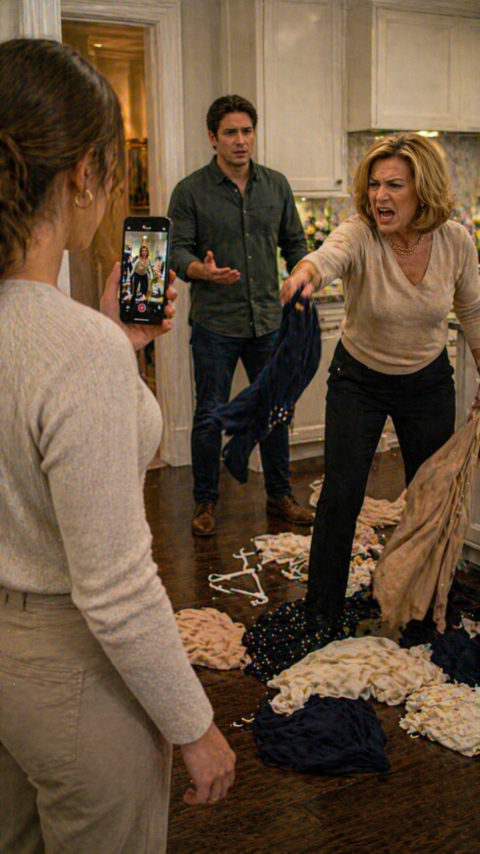I stood in the doorway, holding a garment bag, watching my mother-in-law rip my blouse in half like it meant nothing.