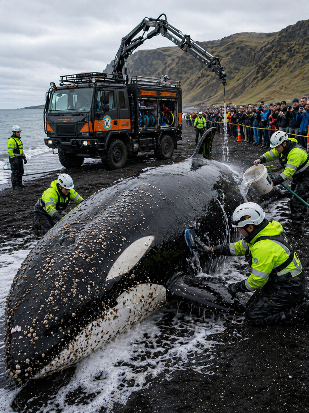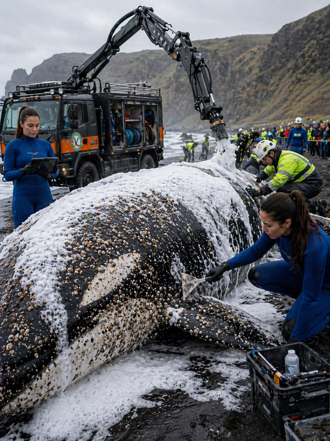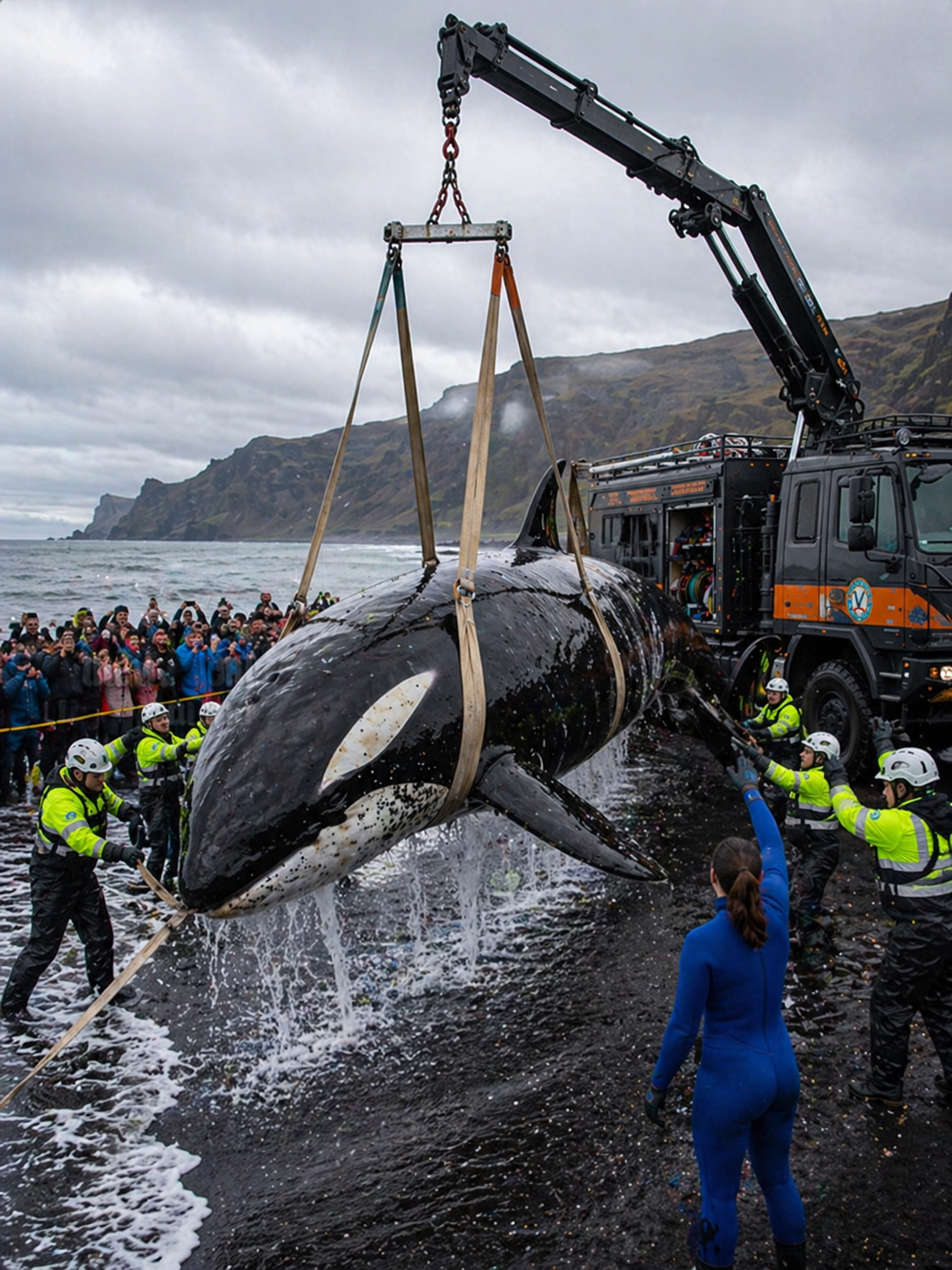 Heavy straps were positioned under the whale’s body, adjusted slowly to avoid pressure points.