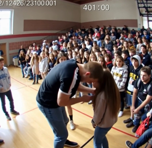 Anna took a deep breath, lifting her head to meet the bully’s gaze. Her eyes, previously unassuming and withdrawn, now gleamed with a resolve that surprised even her. The gymnasium, filled with students eagerly anticipating her submission, was about to witness something unexpected.