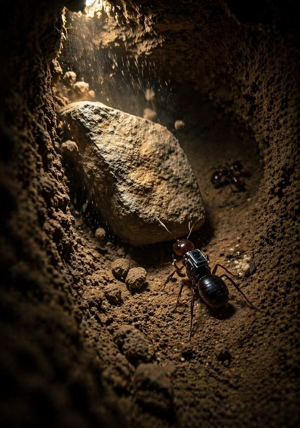 Inside the tunnel, the ant continued forward, and suddenly it wasn’t alone anymore.