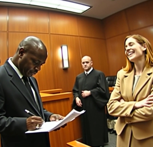 The judge cleared his throat, silencing the courtroom with a commanding presence. The room, thick with tension, seemed to hold its breath in anticipation.