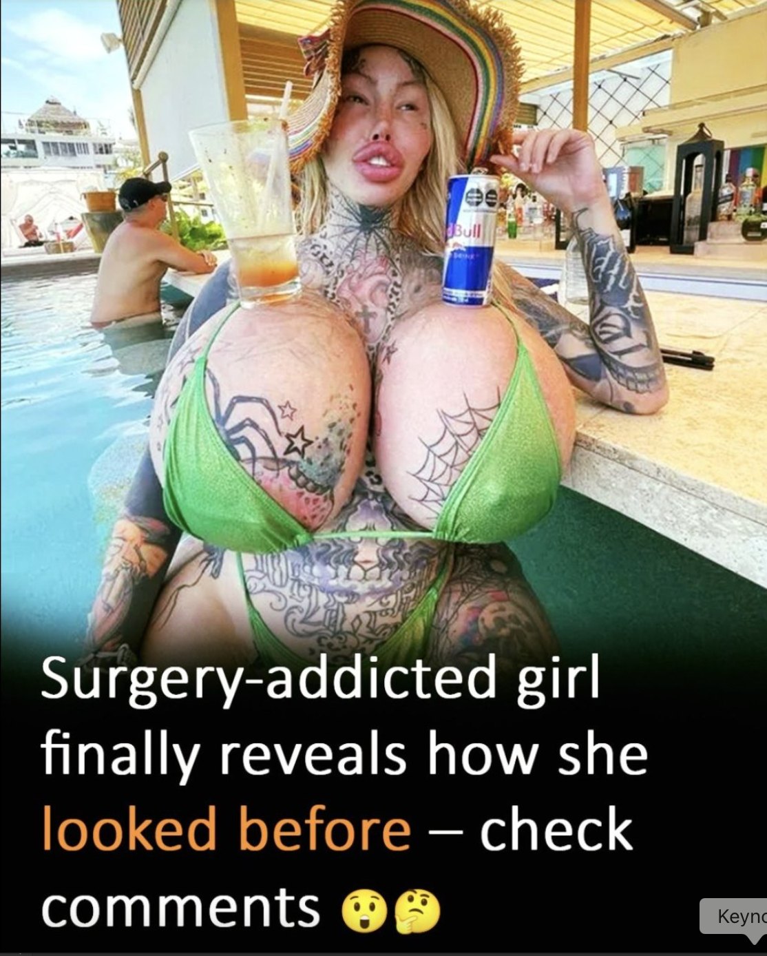 The Toronto, Canada native experimented with the surgeon’s knife and became famous for it. She claims to have spent thousands and thousands of dollars on plastic surgery in what has become an alteration of her face and several other body parts.